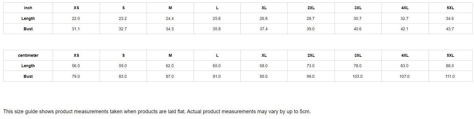 | centimeter | XS | S | M | L | XL | 2XL | 3XL | 4XL | 5XL |