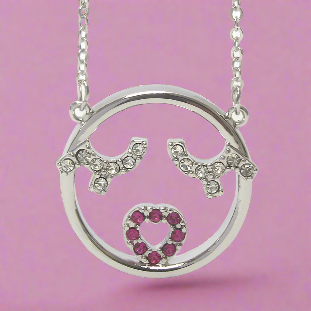 Add some fun to your little girl's jewelry collection with the Melmoji Kisses Necklace! Featuring emoji kissing pendants in white gold and accentuated with sparkling Australian crystals, this necklace is a playful and stylish accessory. Perfect for expressing emotions and adding a touch of whimsy to any outfit.