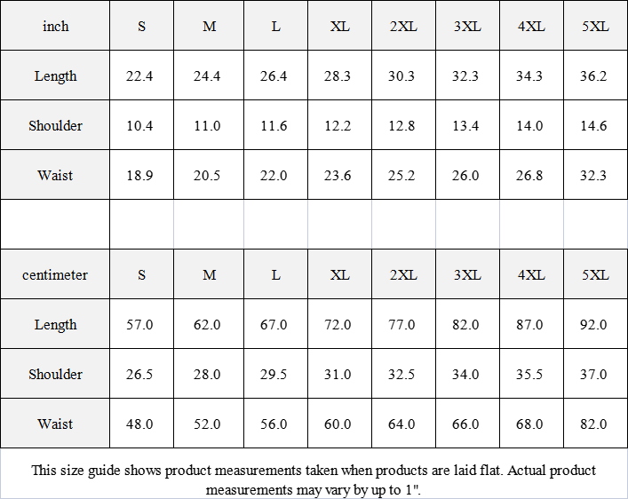 | centimeter | S | M | L | XL | 2XL | 3XL | 4XL | 5XL |